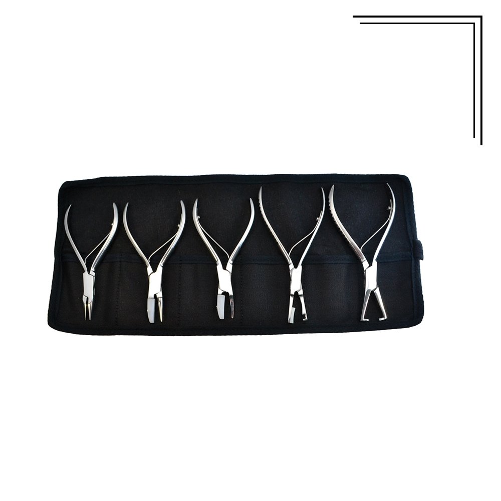 Set of 5 conventional handle pliers in convenient roll up pouch.